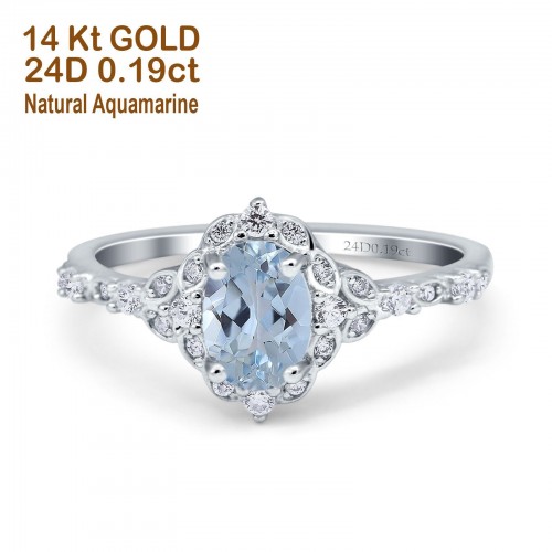 14K Yellow Gold Oval Natural Aquamarine 0.95ct G SI Diamond Engagement Ring Size 6.5