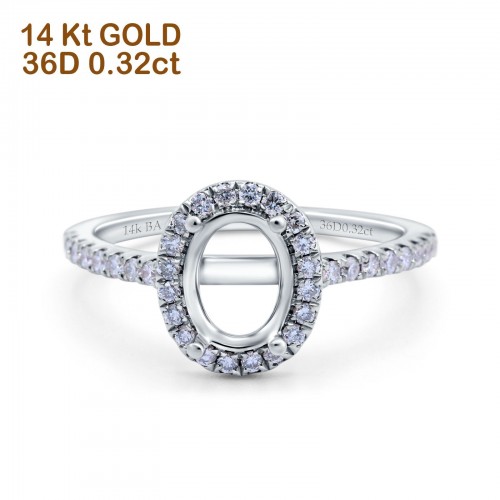 14K Yellow Gold Oval Semi Mount 0.32ct Diamond Engagement Ring Size 6.5