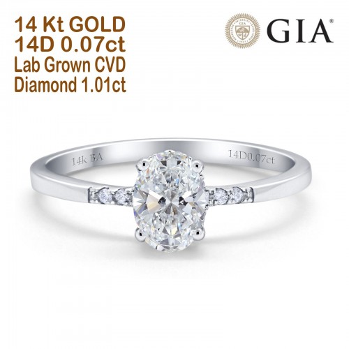 14K Yellow Gold Oval Vintage Style 8mmx6mm D VS2 GIA Certified 1.01ct Lab Grown CVD Diamond Engagement Wedding Ring Size 6.5