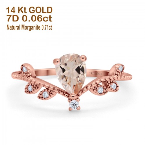 14K Yellow Gold Pear Natural Morganite 0.77ct G SI Diamond Engagement Ring Size 6.5