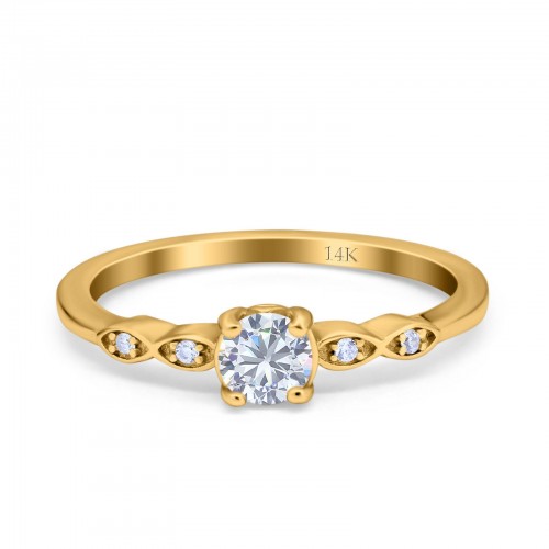 14K Yellow Gold Petite Dainty Round Bridal Simulated CZ Wedding Engagement Ring Size 7