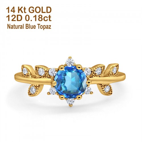14K Yellow Gold Round Natural Swiss Blue Topaz 1.44ct G SI Diamond Engagement Ring Size 6.5