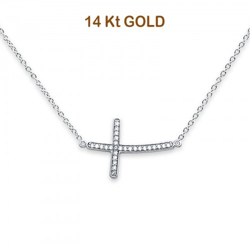 14K Yellow Gold Side Way Cross Necklace 17″ + 1″ Extension