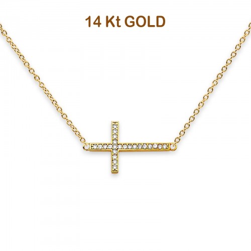 Elevate your boutique collection with this magnificent addition: our 14K Yellow Gold Sideways Cross Necklace. This is an absolutely brilliant display of faith and fashion. This necklace is luxuriously created from the radiant 14K yellow gold, with a proud 14K stamp carrying total assurance. Its chain is delicately designed for versatile styles, 17 inches long with an additional extension of 1 inch, to let you size the length for fit. The chain of 17 inches, with an extension of 1 inch, is beautifully designed, including the spring ring clasp, thus making it fit and safe for all occasions, from daily to elegance. It weighs around 1.8 grams, meaning it is light and great for just about any casual or sophisticated look. Add this timeless piece to your collection and be the one to talk about among your clients by exclusively offering this product for wholesale at your store.