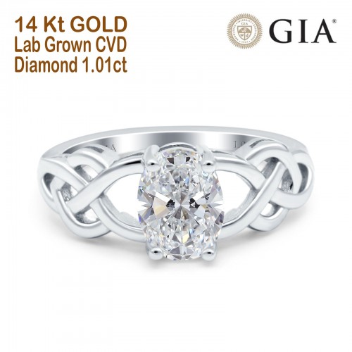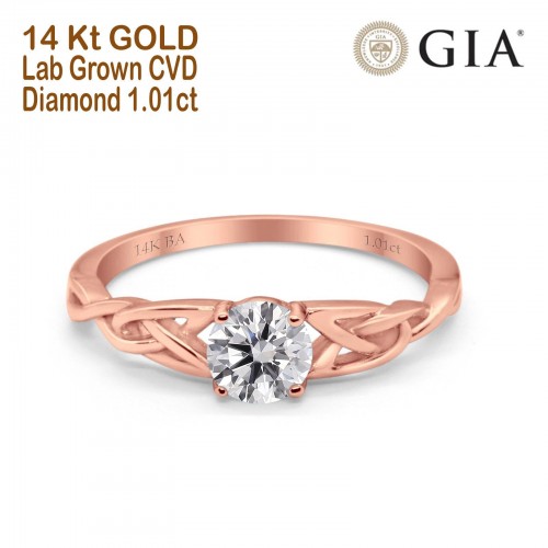 14K Yellow Gold Solitaire Trinity Round 6.5mm D VS1 GIA Certified 1.01ct Lab Grown CVD Diamond Engagement Wedding Ring Size 6.5