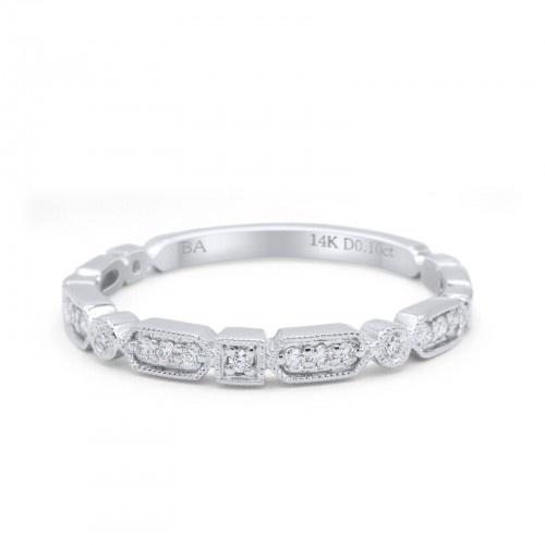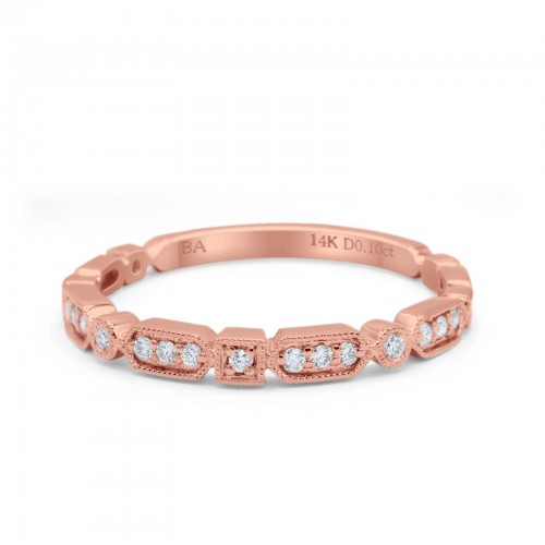 14K Yellow Gold Stacking Eternity Art Deco 3mm Wedding Band Natural Diamond Engagement Ring 0.10ct G SI-Size 6.5