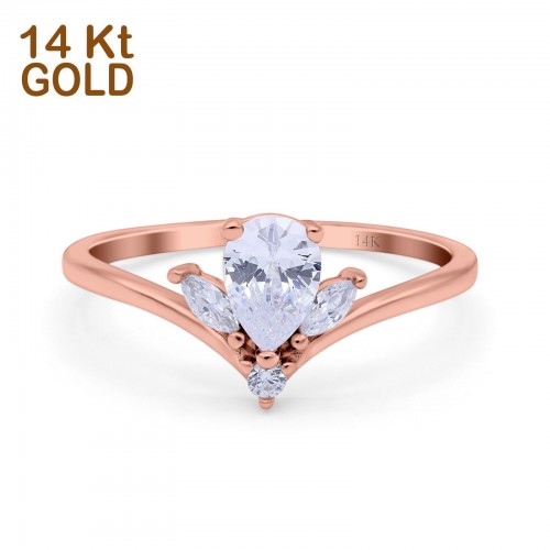 14K Yellow Gold Teardrop Pear Art Deco Engagement Ring Marquise Simulated Cubic Zirconia Size-7 14K Gold