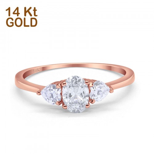 14K Yellow Gold Three Stone Fashion Promise Ring Oval Simulated Cubic Zirconia Size-7 14K Gold