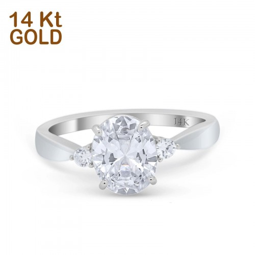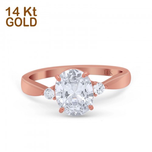 14K Yellow Gold Three Stone Oval Bridal Simulated CZ Wedding Engagement Ring Size 7 14K Gold