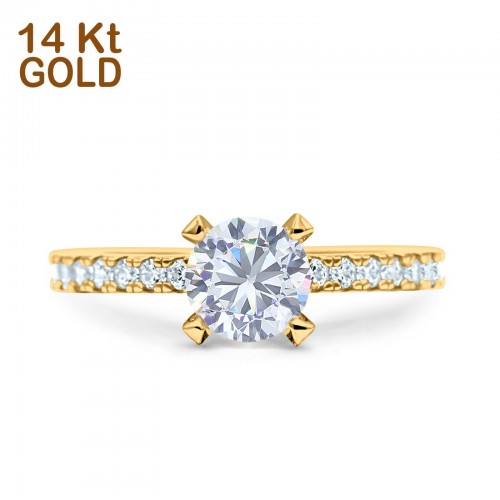14K Yellow Gold Two Piece Solitaire Accent Round Bridal Set Ring Wedding Engagement Band Simulated CZ Size 7 14K Gold