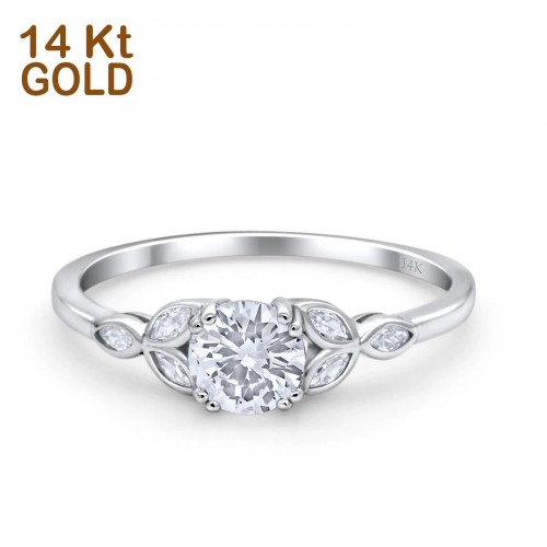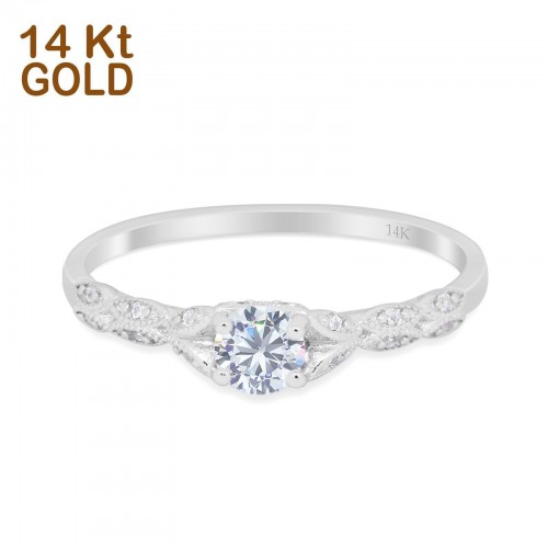 14K Yellow Gold Vintage Art Deco Round Simulated CZ Wedding Engagement Ring Size 7 14K Gold