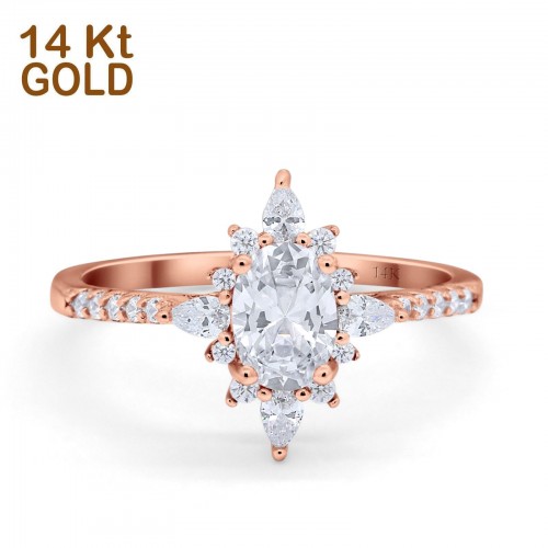 14K Yellow Gold Vintage Halo Oval Simulated CZ Wedding Engagement Ring Size 7 14K Gold