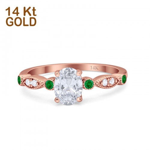 14K Yellow Gold Vintage Style Oval Bridal Green Emerald Simulated CZ Wedding Engagement Ring Size 7 14K Gold