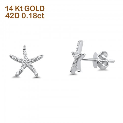 14kt Solid Yellow Gold Star Stud Diamond Earrings Wholesale 8mm