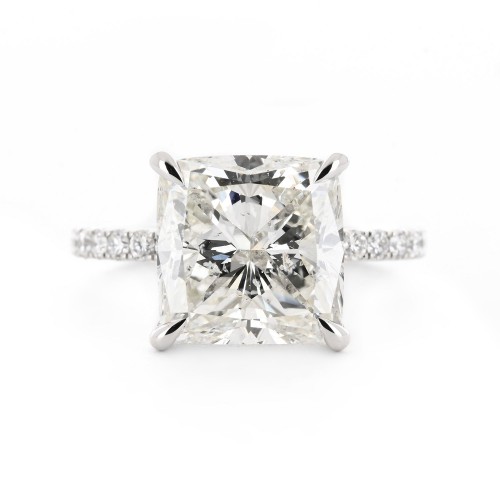 Introducing the 3.90ctw Emerald Diamond Three-Stone Engagement Ring, featuring tapered baguettes set in luxurious 950 platinum. The center emerald-cut diamond weighs 3.69 carats, with an exceptional F color grade and VS2 clarity, offering brilliance and sophistication. The tapered baguette side stones perfectly complement the center stone, creating a timeless and elegant design.