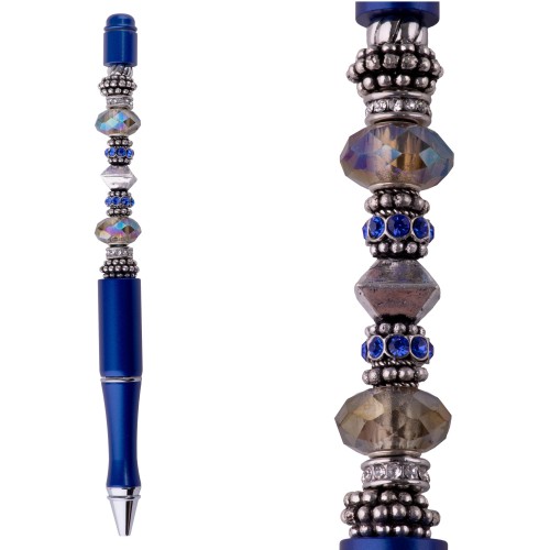 Beads with Bead Pen Kit – Blue Rhinestone and Opalite with White Plastic Pen- Limited Edition