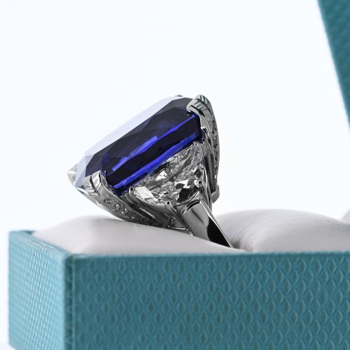 34.08ct Cushion-Cut Tanzanite & Diamond Solitaire Ring