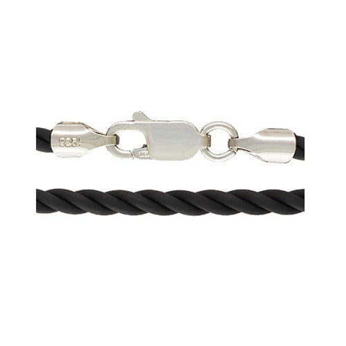 4.0mm Braided Black Rubber Necklace w/ Sterling Silver lobster Clasp