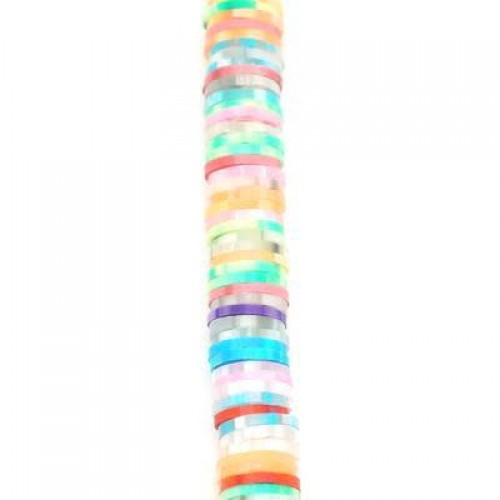 These thin heishi beads come in fun bright colors and are perfect for color-blocking designs. Use a few in a design or use the whole strand! Also referred to as “African Vinyl” and Polymer Clay, these beads were originally made from vulcanized rubber. Recent testing shows that many are made from other materials including upcycled vinyl records. Just think….you could be creating your jewelry designs using albums from your favorite musical artist! Hole size is approximately 2mm. Sold by the 15-16” strand, there are approximately 325-365 beads per strand.