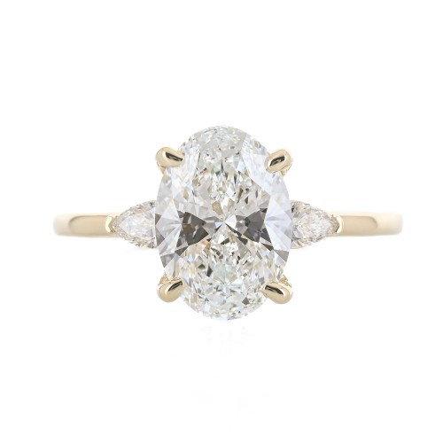 This 14K yellow gold band features east-west bezel-set oval natural diamonds totaling 0.73 carats. This ring is a size 6.5.