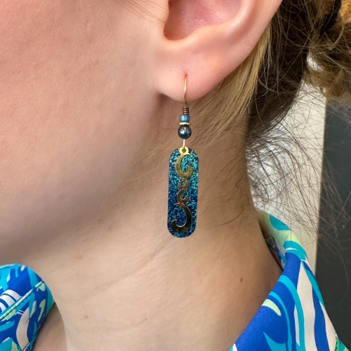 Black, white, and silver colors make up these classic artsy fishhook earrings.