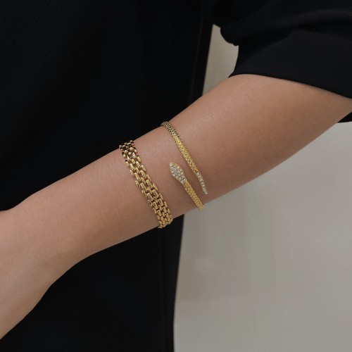 Crafted in a high-shine gold finish, this bracelet captures that modern-luxe aesthetic — clean, versatile, and endlessly chic. Whether worn solo for a minimalist statement or stacked with your favorite bangles and cuffs, it adds that instant polish your outfit’s been missing.