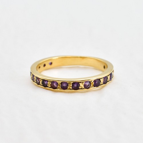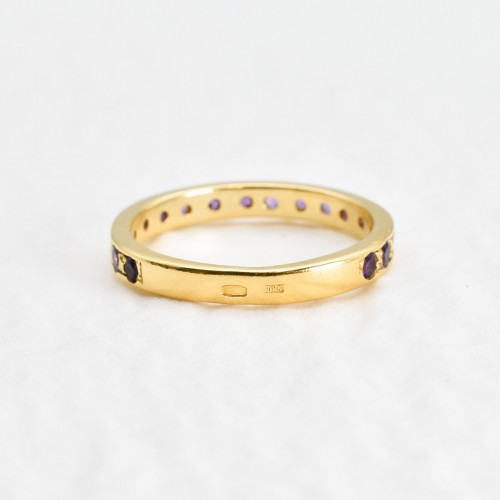 Amethyst Gold Band set with Natural Amethyst in a diamond cut & stunning purple color, sourced from Brazil, at 2mm each (1 Ct combined) from Brazil.
