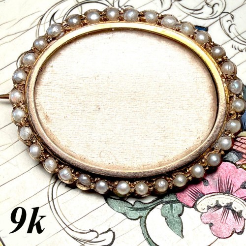 Antique 10k Gold and Flat Facet-cut Garnet Gem Locket Brooch, Mourning a Child, Blond Hair Art