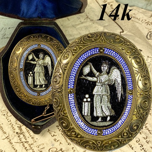 One of my own sets I’ve kept for decades, this is one of the most stunningly beautiful old tortoise shell boxes ever, excellent condition throughout (one nip to shell at one corner of lid) and with silver metal stringing and a cartouche up top that bears an elegant burin-engraved “D L”. It has all of the original 12k gold and 14k gold sewing tools inside, including 2 gold silk winders, thimble (14k), bodkin, scissors, stiletto, needle case – all original to the case. All have been acid tested, and there are tiny marks. The set is likely Dutch, I think. Very delicate engraving adorns each piece – so pretty! Steel scissors blades still very sharp. Seems not to have been used much at all, and definitely well treasured these centuries. Measurements are noted on the photos.