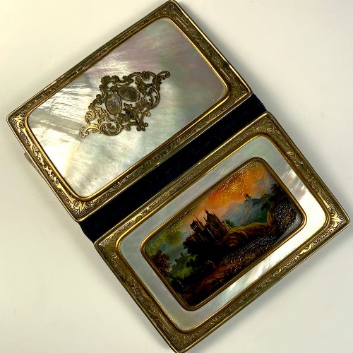 Very good to excellent throughout. Rare to find one of these without any loss, mother of pearl being easy to damage, and most of these necessaire were actually used so sometimes dropped, damaged. The bright gold look corner/frame and cartouche are all fully intact and just beautiful.