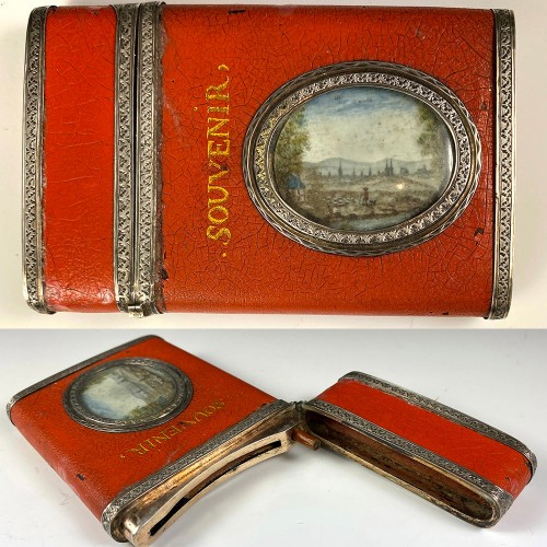 Antique French Vernis Martin Nécessaire, Sterling Silver and Miniature Painting, c.1750s