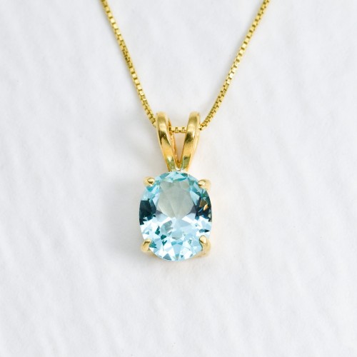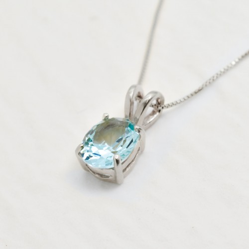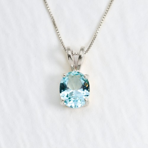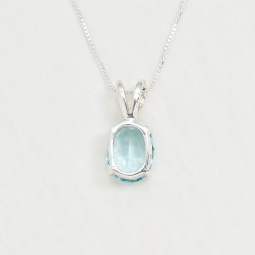 Aquamarine Pendant set with a Created Aquamarine in a perfect diamond cut, flawless clarity & stunning aqua color, at 10x8mm (3 Cts).
