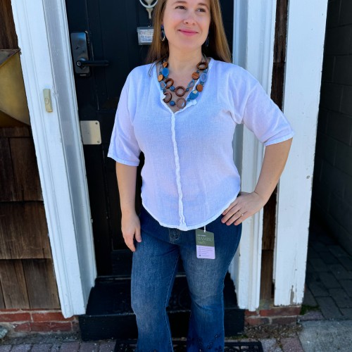 Two strands of tagua, recycled wood, and Bombona seeds never looked better. Pair our New Arlene Necklace with our New Arlene Earrings.