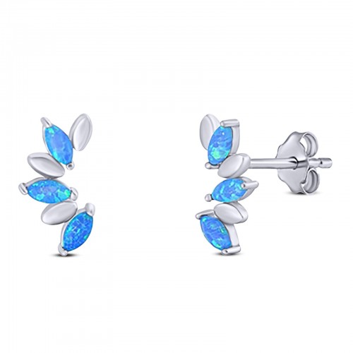 Art Deco Marquise New Style Stud Earring Created Blue Opal Solid 925 Sterling Silver (11.6mm)