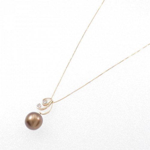 Au750 Black Pearl Diamond 2way Necklace 18K Rose Gold