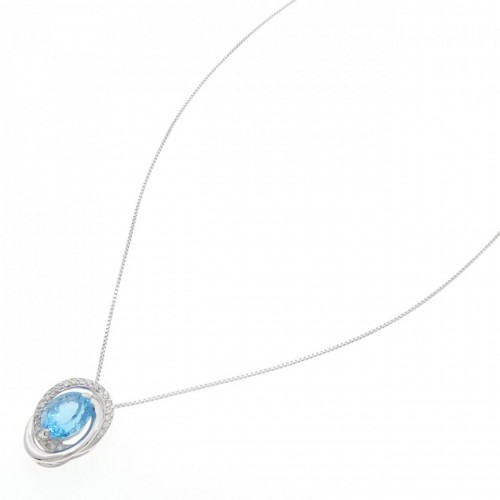 Au750 Blue Topaz Diamond Necklace 18K White Gold