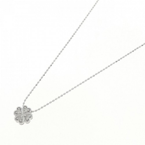 Au750 Clover Diamond Necklace Silver 18K White Gold