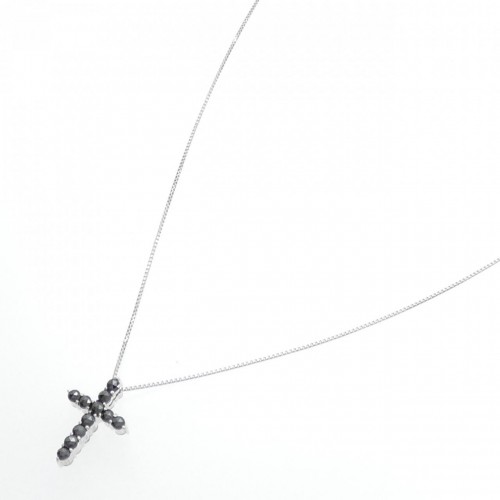 Au750 Diamond Cross Necklace Silver 18K White Gold