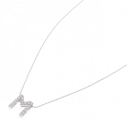 Au750 Diamond Initial M Necklace Silver 18K White Gold