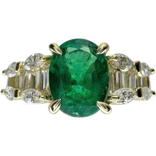 Indulge in the allure of this Au750 emerald and diamond ring. A timeless piece that whispers elegance, its vibrant emerald center stone, embraced by shimmering diamonds, adds a touch of sophistication to your everyday style. Perfect for the discerning woman who appreciates understated luxury and enduring beauty.