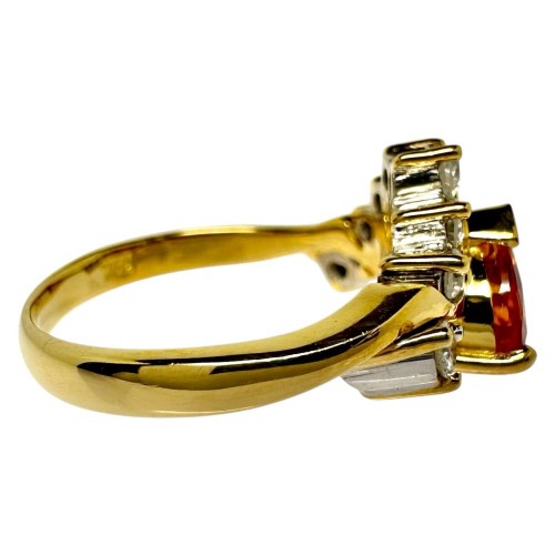 Au750 Orange Sapphire No Diffusion Diamond Ring Yellow Gold