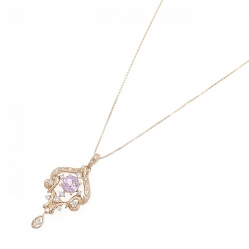 Au750 Pink Gold Kunzite Diamond Necklace 18K Rose Gold