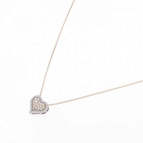 Indulge in timeless elegance with this Au750 two-tone gold and diamond heart necklace. The delicate design adds a touch of sophistication to any outfit, perfect for everyday wear or special occasions. A versatile piece that effortlessly complements your personal style and reflects your discerning taste.