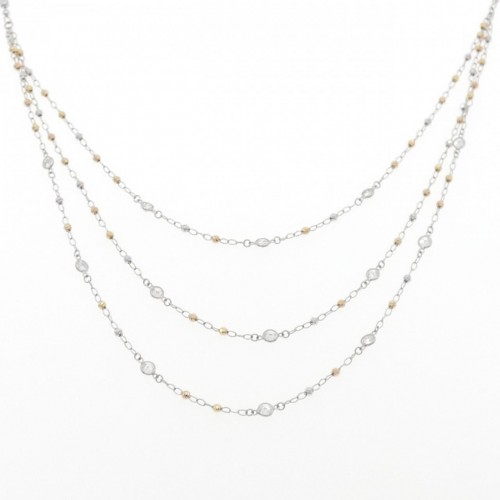 Indulge in the timeless elegance of this 18K gold and diamond necklace. A delicate sparkle that elevates your everyday style. Lightweight and comfortable, it’s perfect for adding a touch of sophistication to any outfit, transitioning seamlessly from daytime errands to evening gatherings. A subtle yet luxurious piece to complement your curated wardrobe.