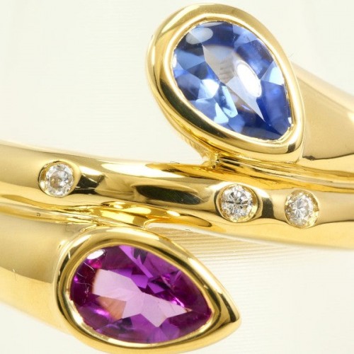Au750 Sapphire Pink Sapphire Diamond Ring Gold Yellow Gold