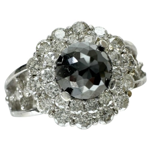 Au750 White Gold Black Diamond Diamond Ring 18K White Gold