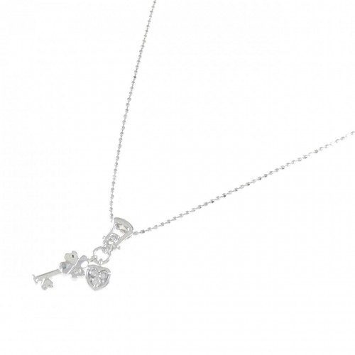 Au750 White Gold Clover Heart Key Diamond Necklace Silver 18K White Gold