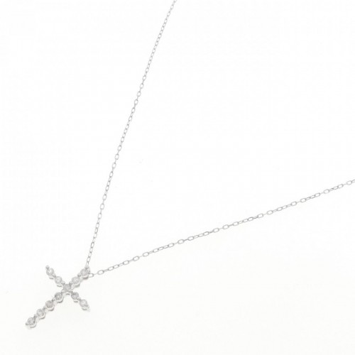 Au750 White Gold Cross Diamond Necklace Silver 18K White Gold