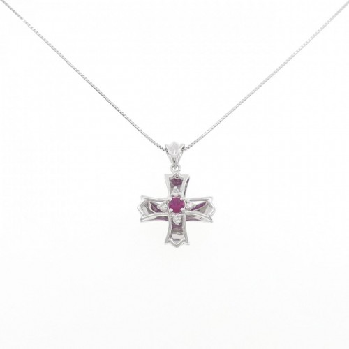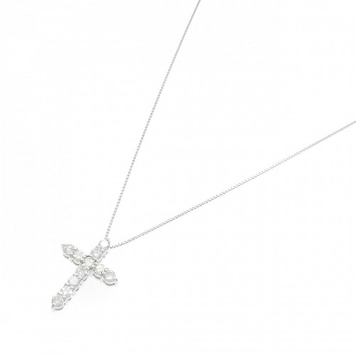 Au750 White Gold Cross Diamond Necklace Silver 18K White Gold
