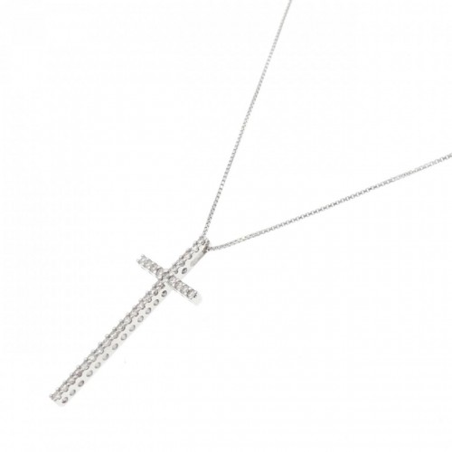 Au750 White Gold Cross Diamond Necklace Silver 18K White Gold